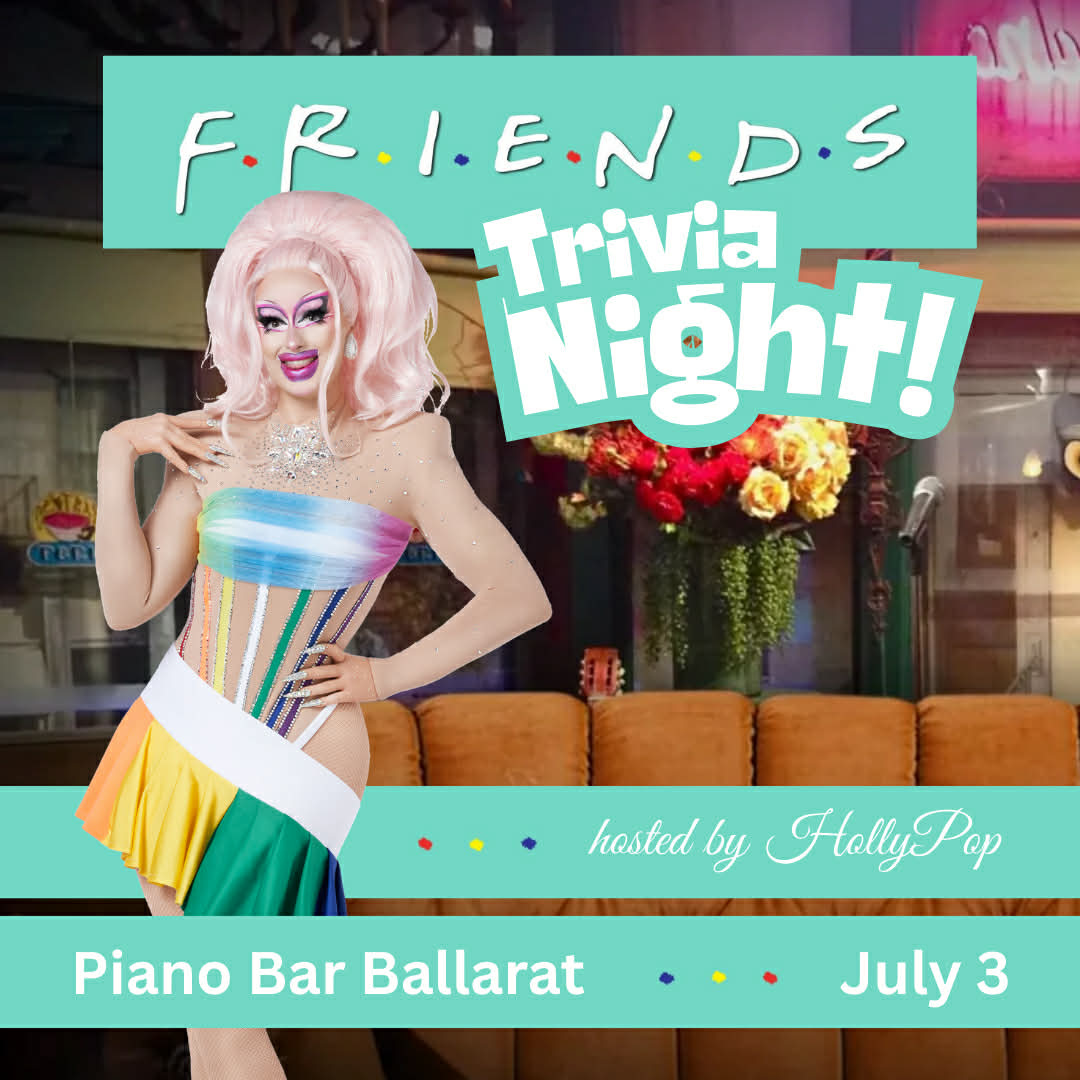 Join us at Piano Bar Ballarat as Holly Pop hosts a trivia night dedicated entirely to the iconic world of Friends. Expect a night packed with laughs, nostalgia and plenty of moments where you’ll be shouting answers across the table like Joey saying “How you doin’?”